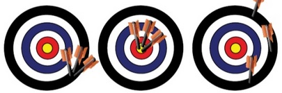 偏りとばらつきの例として以下のダーツの結果を見てみましょう。