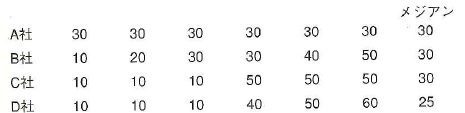 同じようにして、他の会社のメディアンを求めてみましょう。