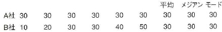 B社の場合 50−10=40 (レンジが大きいので、ばらつきも大きい)